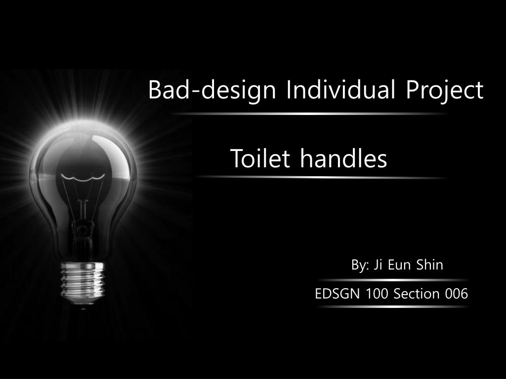 Bad-design Individual Project. Toilet handles. By: Ji Eun Shin. EDSGN 100 Section 006. On each floor, five toilets are shared a mong 40 students. . Toilet handles in a public restroom can have up to 40, 000 germs per square inch. . http://www.sanicone.com/disease.html.