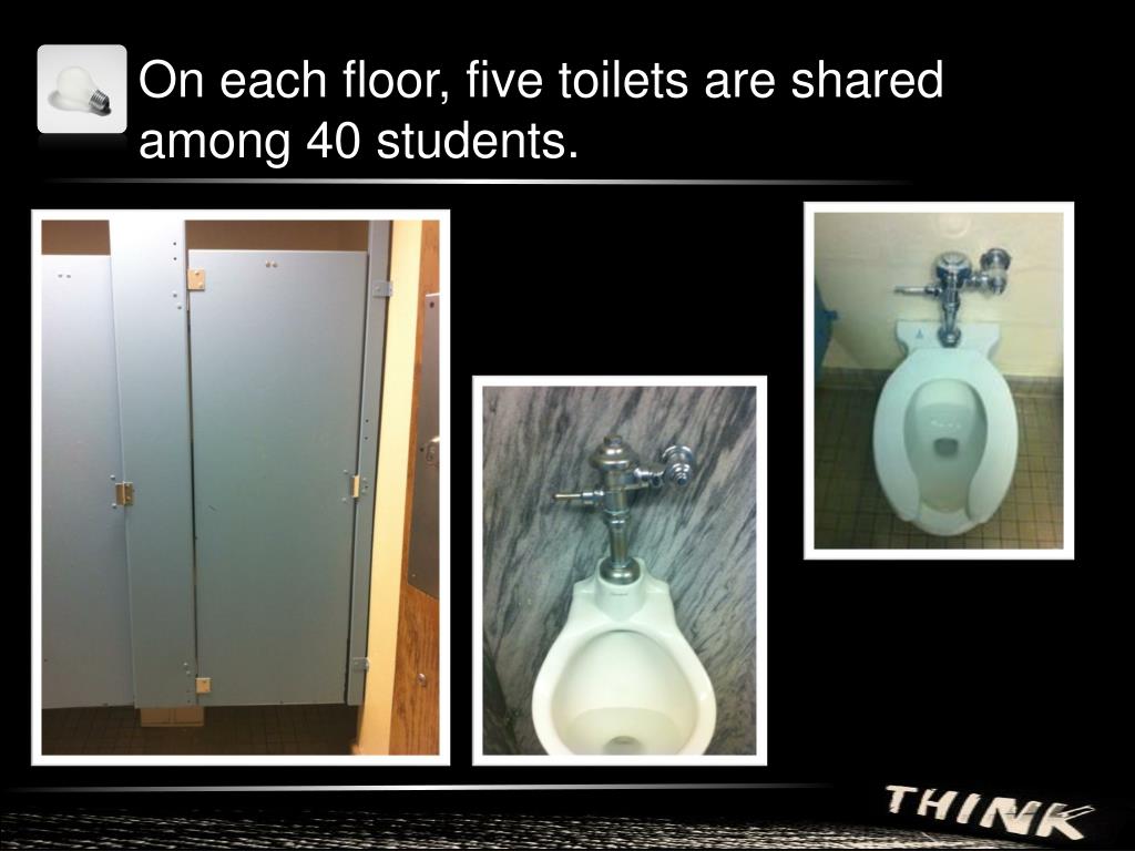 On each floor, five toilets are shared among 40 students.