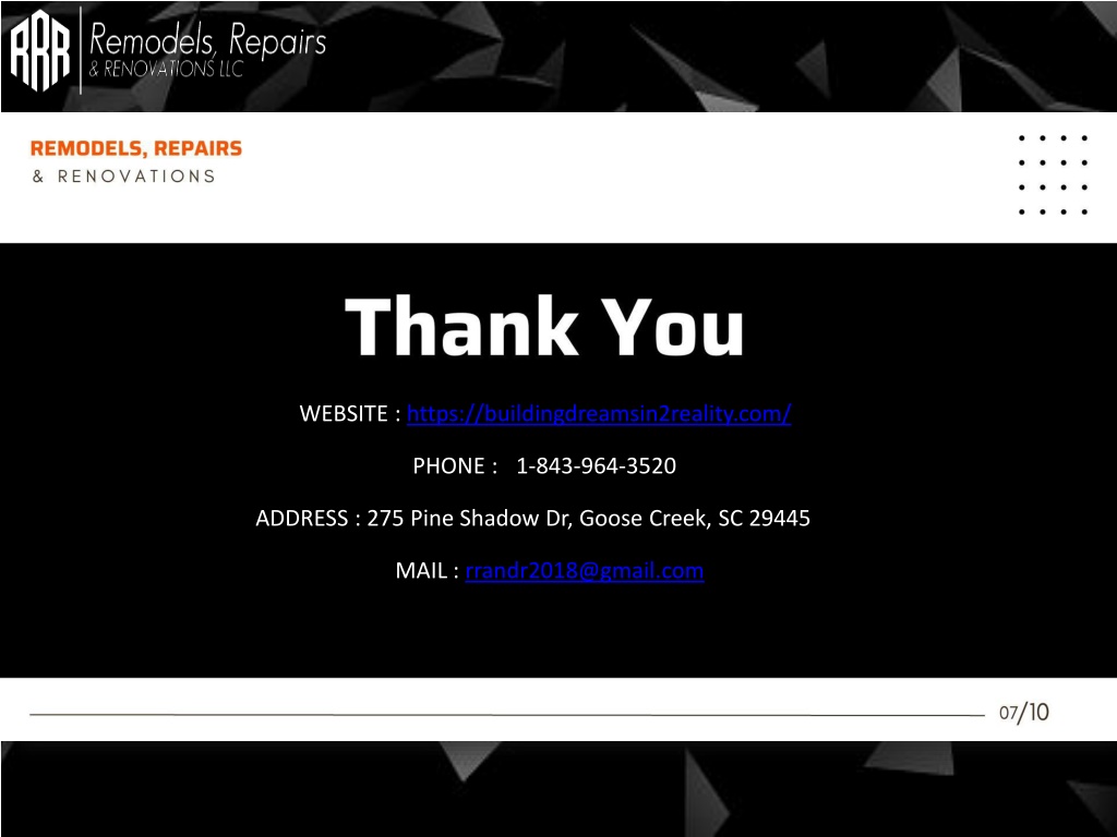 WEBSITE : https://buildingdreamsin2reality.com/ PHONE : +1-843-964-3520 ADDRESS :275 Pine Shadow Dr, Goose Creek, SC 29445 MAIL : rrandr2018@gmail.com