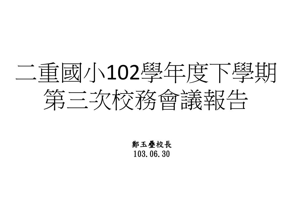 二重國小102學年度下學期第三次校務會議報告 鄭玉疊校長 103.06.30