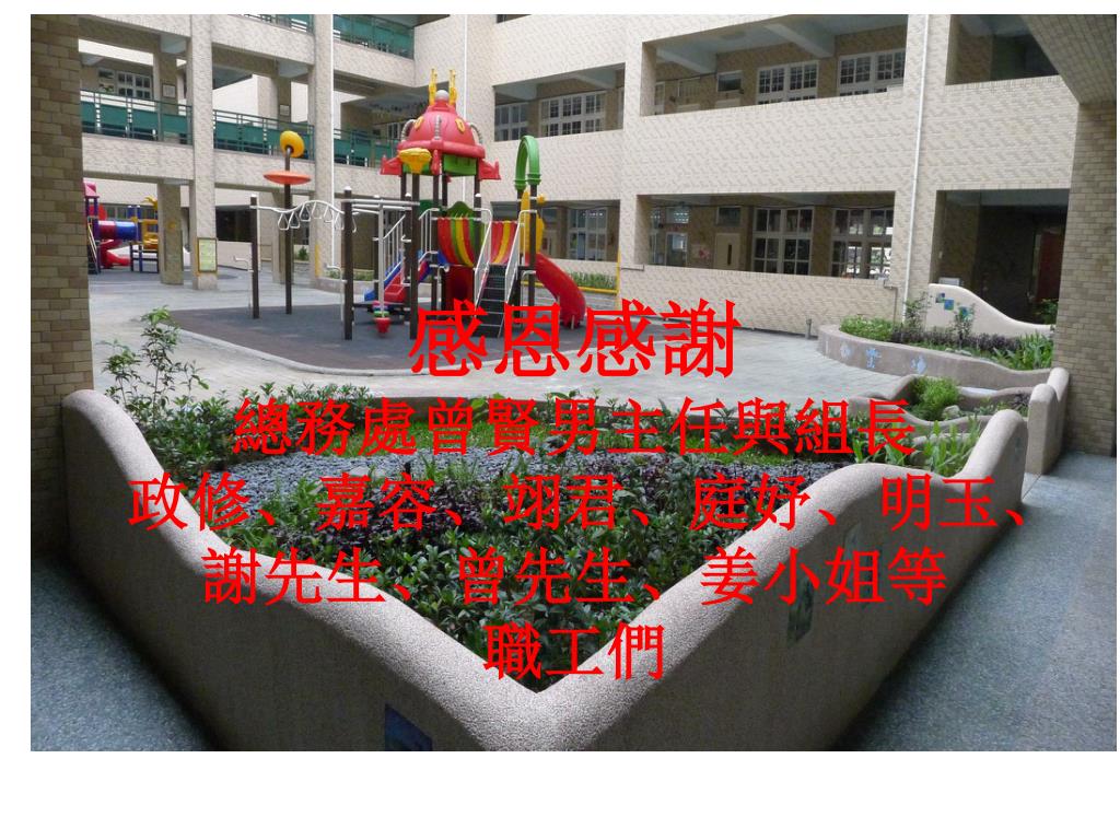 感恩感謝總務處曾賢男主任與組長 政修、嘉容、翊君、庭妤、明玉、謝先生、曾先生、姜小姐等職工們