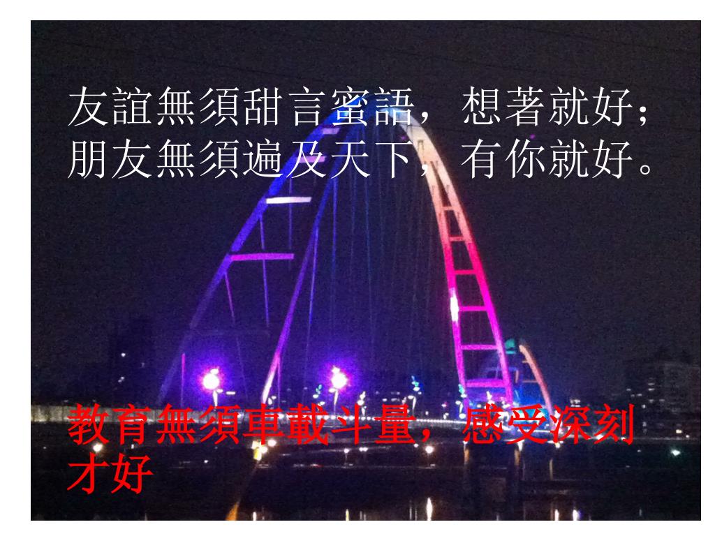 友誼無須甜言蜜語,想著就好;朋友無須遍及天下,有你就好。友誼無須甜言蜜語,想著就好;朋友無須遍及天下,有你就好。 教育無須車載斗量,感受深刻才好