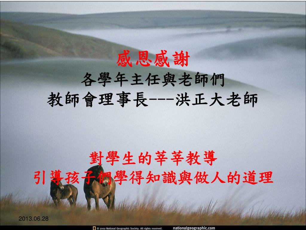 感恩感謝 各學年主任與老師們 教師會理事長---洪正大老師 對學生的莘莘教導 引導孩子們學得知識與做人的道理