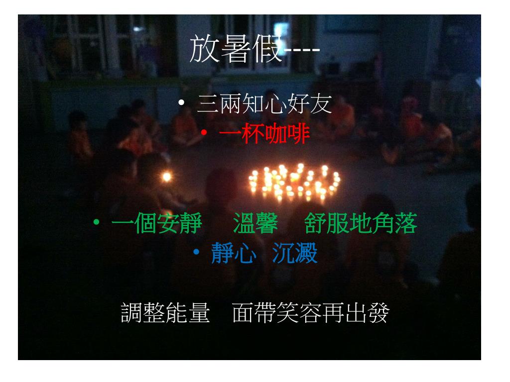 放暑假---- • 三兩知心好友 • 一杯咖啡 • 一個安靜 溫馨 舒服地角落 • 靜心 沉澱 調整能量 面帶笑容再出發