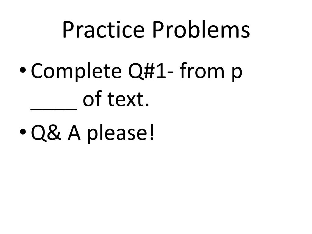 Practice Problems • Complete Q#1- from p ____ of text. • Q& A please!