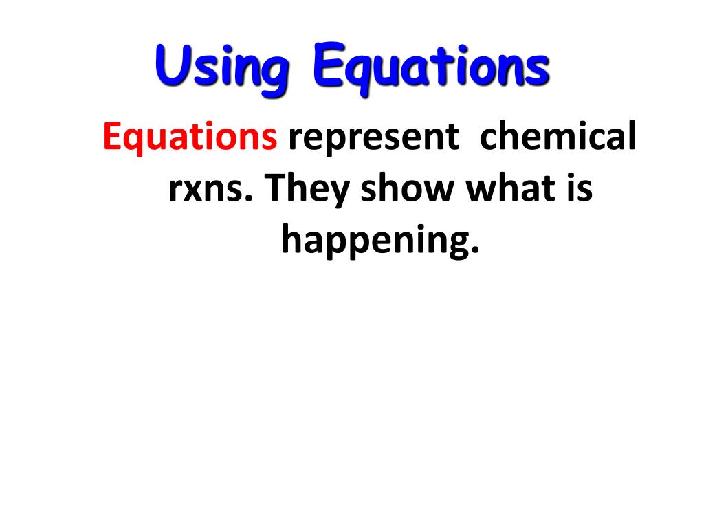 Using Equations Equations represent chemical rxns. They show what is happening.