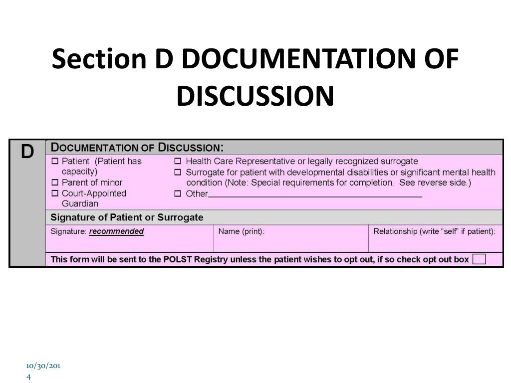 Section D DOCUMENTATION OF DISCUSSION 10/30/2014