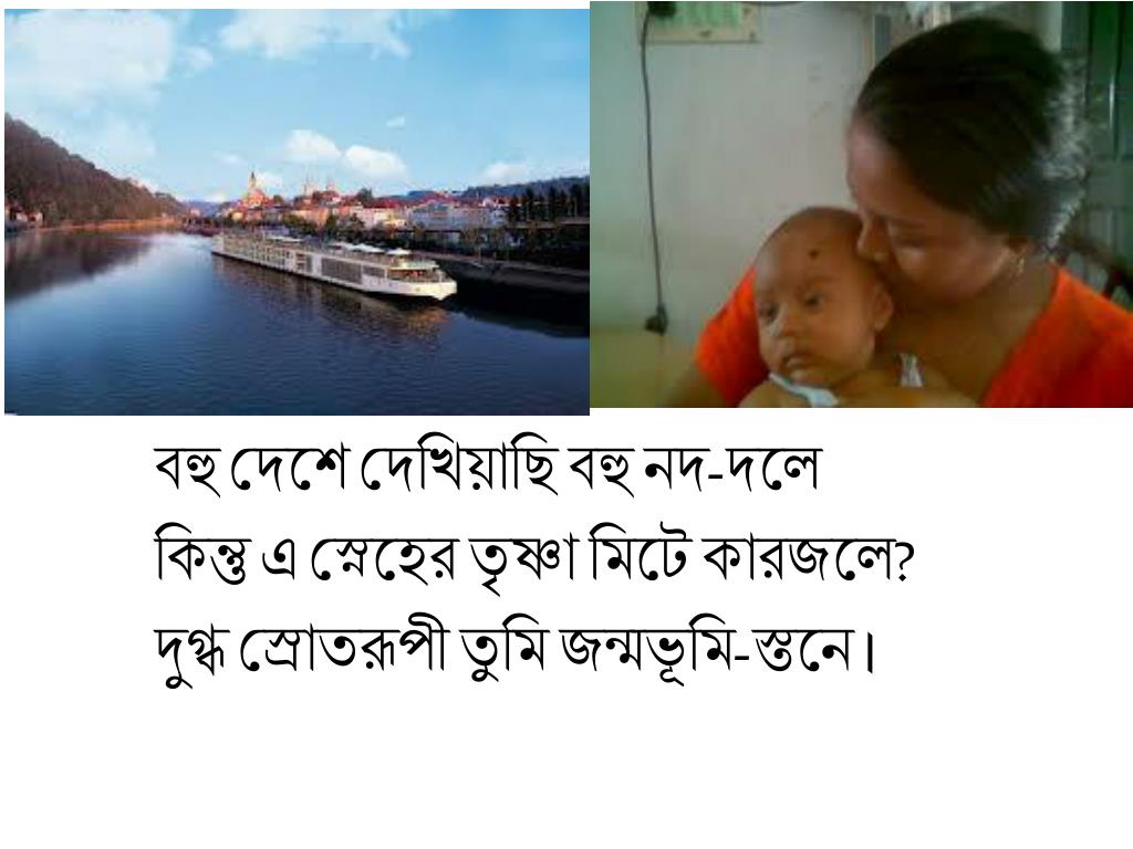 বহুদেশেদেখিয়াছিবহুনদ-দলেবহুদেশেদেখিয়াছিবহুনদ-দলে কিন্তু এ স্নেহেরতৃষ্ণামিটেকারজলে? দুগ্ধস্রোতরূপীতুমিজন্মভূমি-স্তনে।
