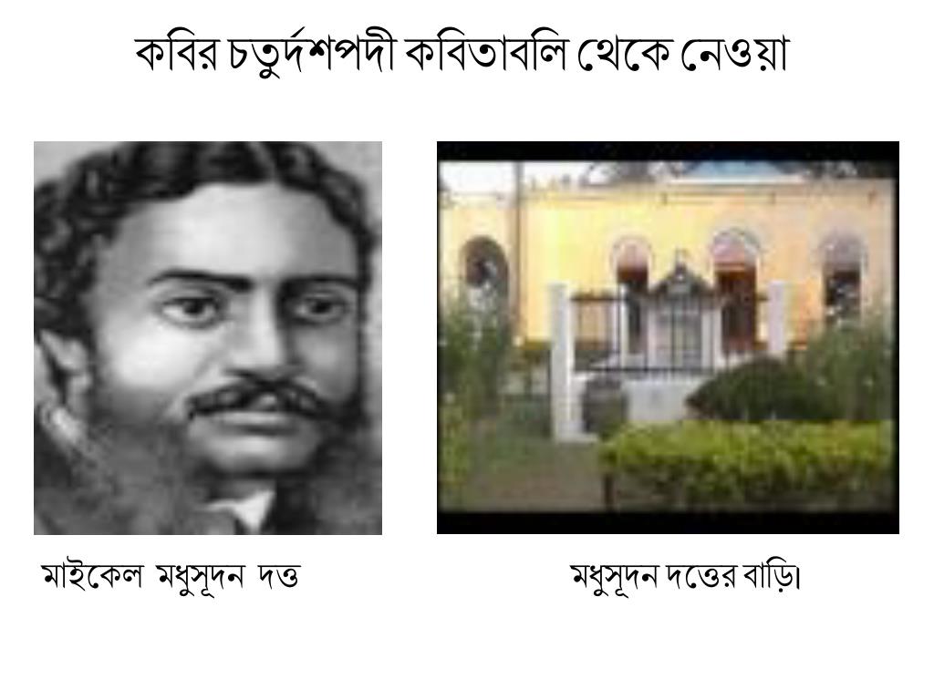 কবিরচতুর্দশপদীকবিতাবলিথেকেনেওয়াকবিরচতুর্দশপদীকবিতাবলিথেকেনেওয়া মাইকেলমধুসূদনদত্ত মধুসূদনদত্তেরবাড়ি।