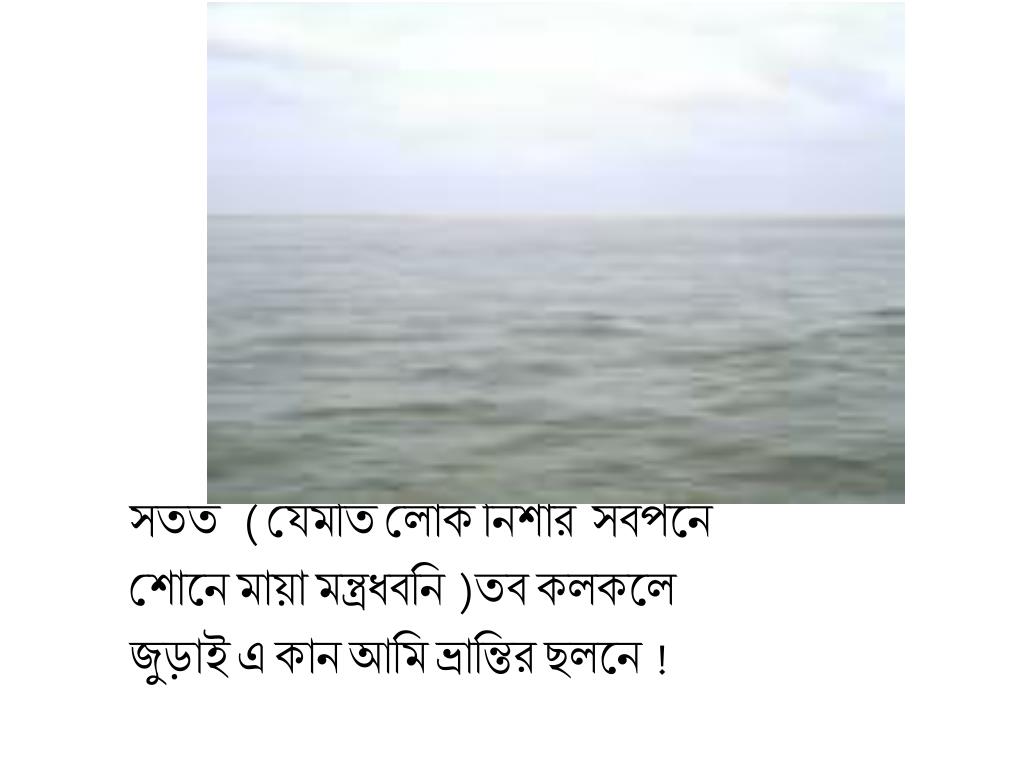 সতত ( যেমতিলোকনিশারসবপনে শোনেমায়ামন্ত্রধবনি )তবকলকলে জুড়াই এ কানআমিভ্রান্তিরছলনে !