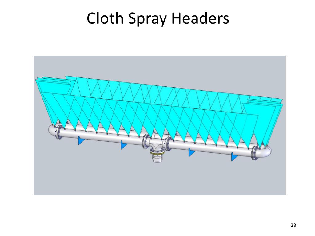 Cloth Spray Header Optimization • Nozzle Design and Efficiency • Conflicting Sprays • Delivered Flow and Pressure to Header • Loop Design with Cleanout