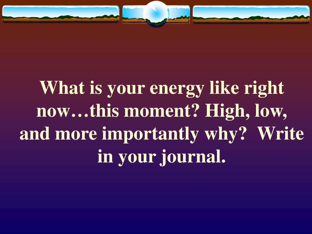 What is your energy like right now…this moment? High, low, and more importantly why? Write in your journal.