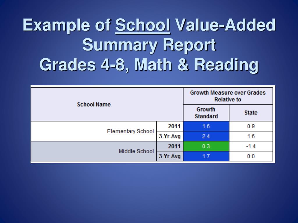 Example of School Value-Added Summary ReportGrades 4-8, Math & Reading