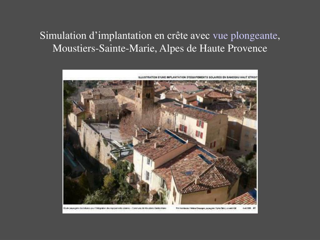 Simulation d’implantation en crête avec vue plongeante, Moustiers-Sainte-Marie, Alpes de Haute Provence