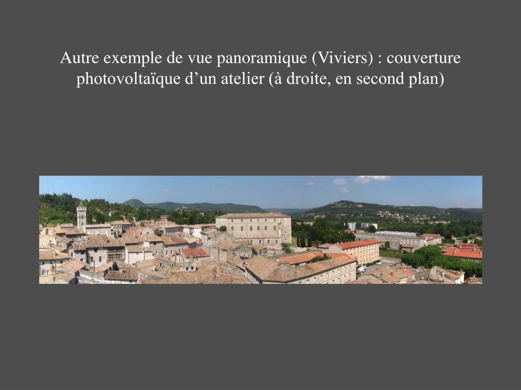 Autre exemple de vue panoramique (Viviers) : couverture photovoltaïque d’un atelier (à droite, en second plan)