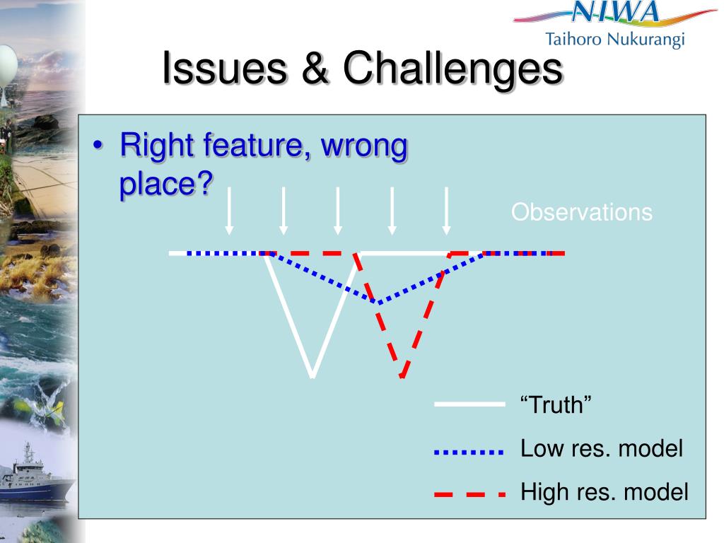 Observations “Truth” Low res. model High res. model Issues & Challenges • Right feature, wrong place?