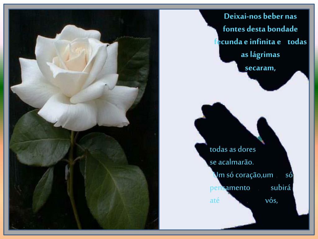 nós O esperamos com os braços abertos. • Oh bondade !Oh beleza !Oh perfeição ! E queremos de alguma sorte, Pai, merecermos Vossa Misericórdia. .