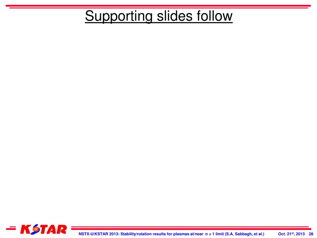 US-Korea collaboration on KSTAR:High beta and 3D plasma stability research • Addresses key KSTAR Milestones (including) • High-performance, long-pulse, steady-state device operation • Instability/disruption avoidance and associated physics research • Application of results to ITER • Supportive Partnerships • NFRI, PPPL, Columbia U., POSTECH, et al. • Successful Collaboration Approach • Synergistic tokamak physics research utilizing the KSTAR (Korea) and NSTX-U (USA) devices – consistent with 5 year plans • Columbia U. group publications • 3 IAEA FEC presentations and papers • 3 refereed-journal articles, +1 paper just submitted, +1 in process