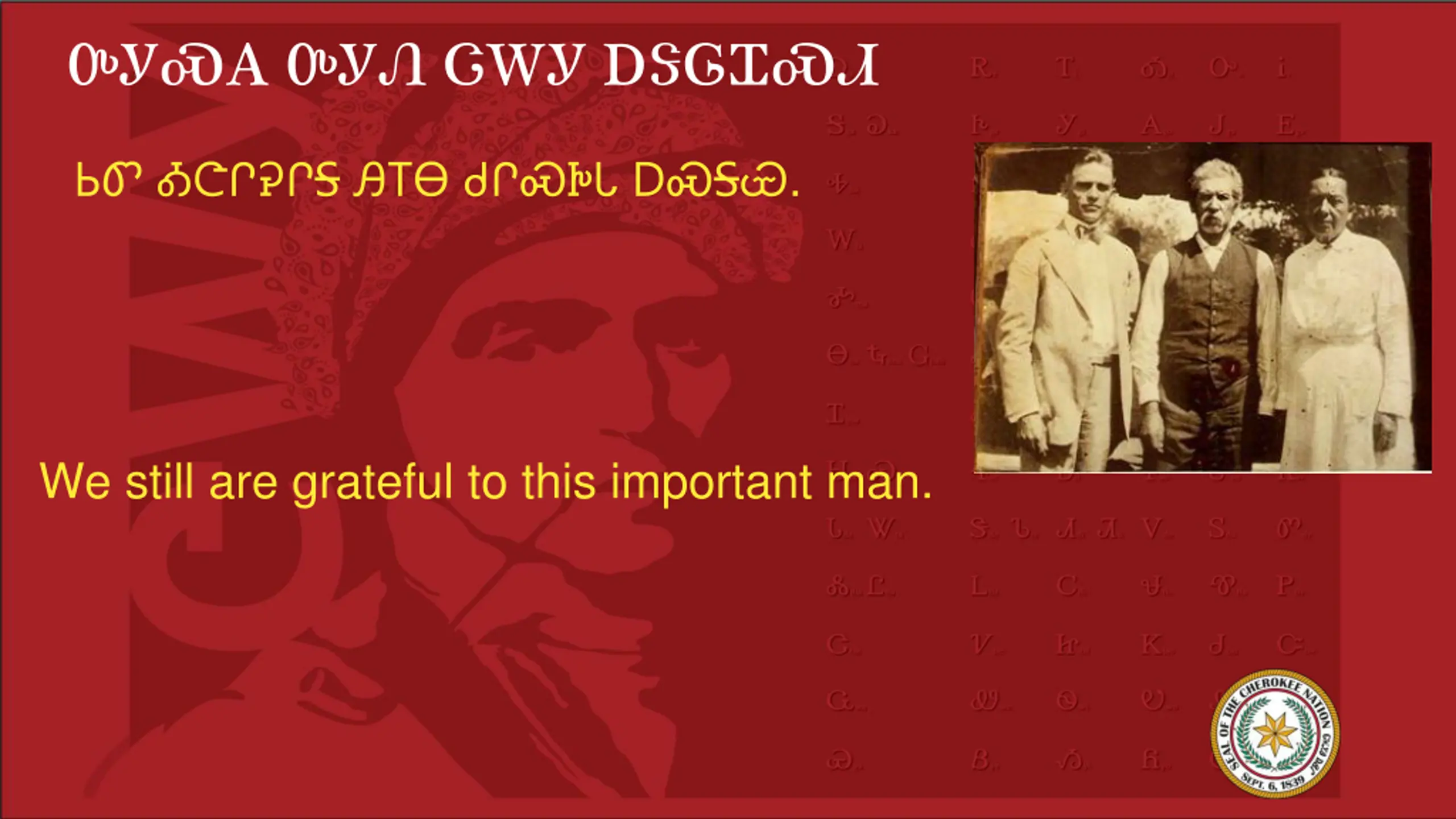 ᏅᎩᏍᎪ ᏅᎩᏁ ᏣᎳᎩ ᎠᏕᎶᏆᏍᏗ ᏏᏛ ᎣᏣᎵᎮᎵᎦ ᎯᎢᎾ ᏧᎵᏍᎨᏓ ᎠᏍᎦᏯ. We still are grateful to this important man.