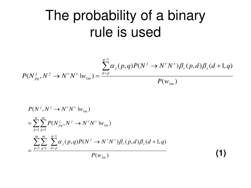 Inside-outside algorithm (cont) 3. Collect the counts 4. Normalize and update the parameters