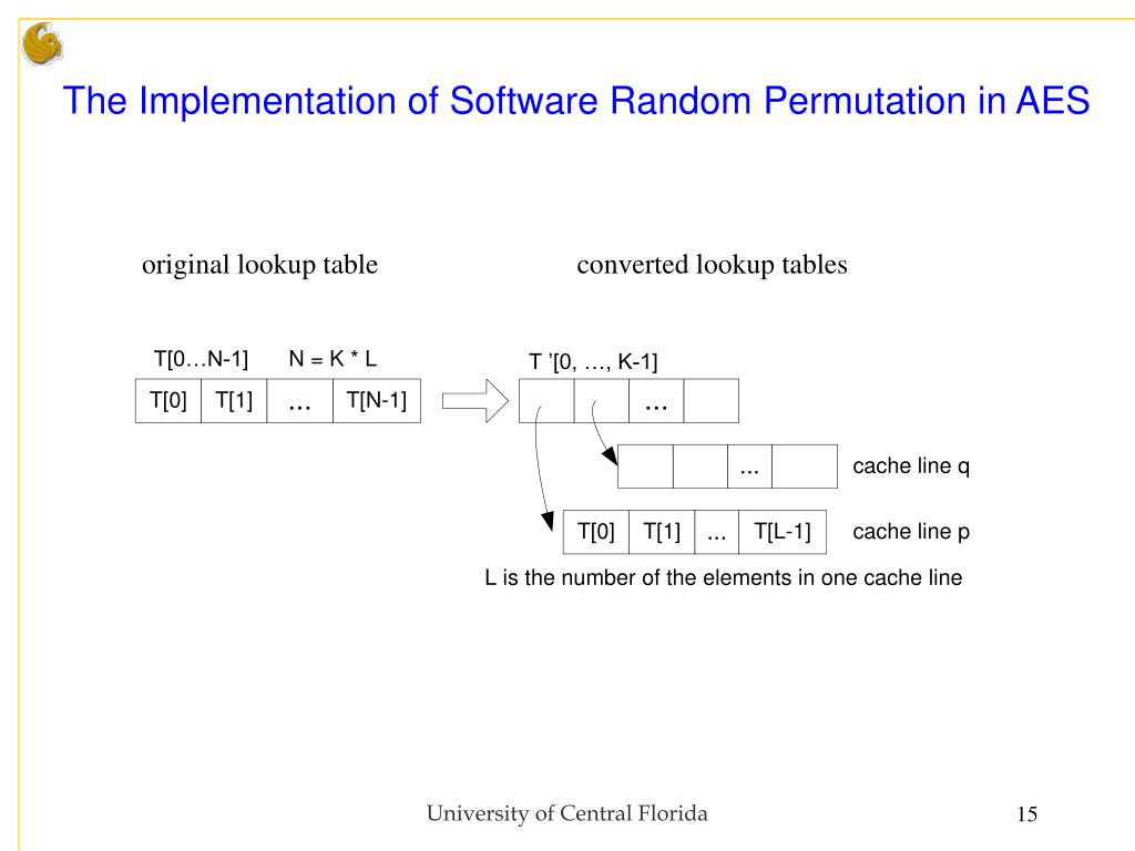 The Implementation of Software Random Permutation in AES original lookup table converted lookup tables University of Central Florida