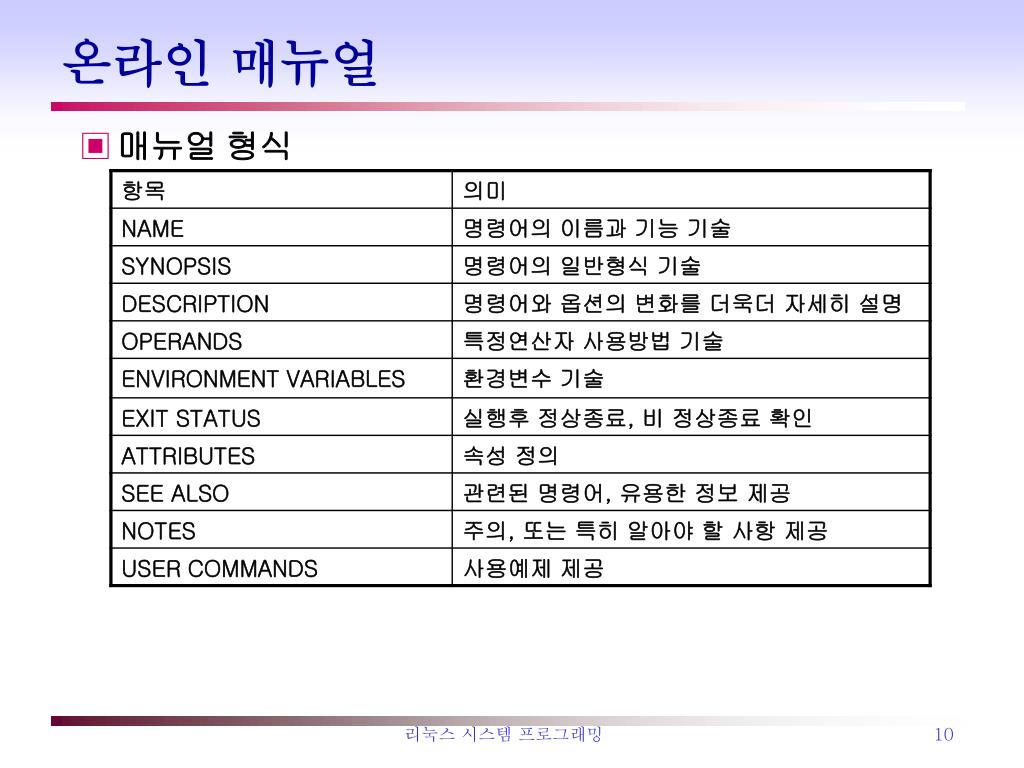 온라인 매뉴얼 • 매뉴얼 출력(man) • 편성