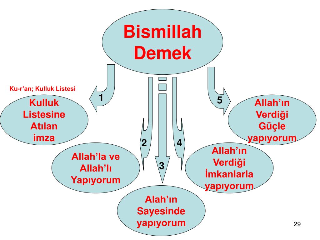 Bismillah Demek Ku-r’an; Kulluk Listesi • 1 • 5 Kulluk Listesine Atılan imza Allah’ın Verdiği Güçle yapıyorum • 2 • 4 Allah’la ve Allah’lı Yapıyorum Allah’ın Verdiği İmkanlarla yapıyorum • 3 Alah’ın Sayesinde yapıyorum