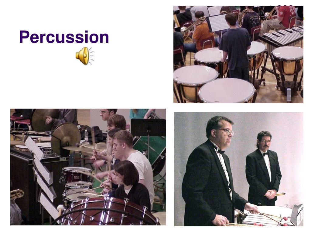 Percussion Timpani Xylophone Snare Cymbals Hand Percussion