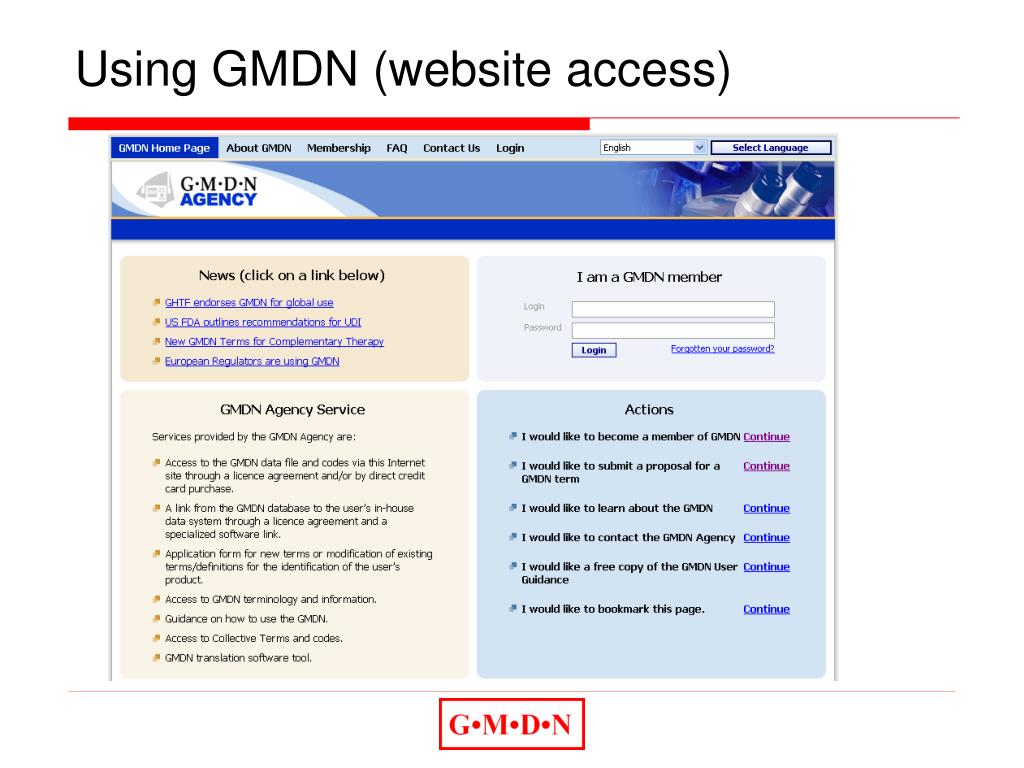 Contents • Background to GMDN & GHTF • Development of GMDN Codes • Scope of GMDN • Who uses GMDN and why • GMDN Data Structure • Using GMDN Database • GMDN and UDI