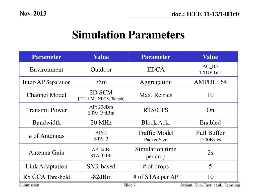 Simulation Parameters Josiam, Kuo, Taori et.al., Samsung