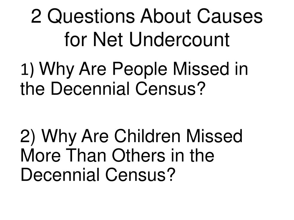 2 Questions About Causes for Net Undercount 1) Why Are People Missed in the Decennial Census? 2) Why Are Children Missed More Than Others in the Decennial Census?