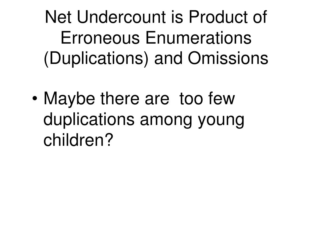 Net Undercount is Product of Erroneous Enumerations (Duplications) and Omissions • Maybe there are too few duplications among young children?