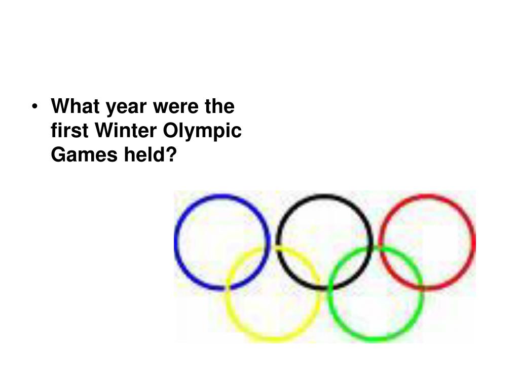 Olympic Scavenger Hunt. Alli Rice(:. What year were the first Winter Olympic Games held?. Which city were the 2004 Summer Olympics held?. How many events are there in the Summer and Winter Olympic Games?. In the 2000 Sydney Olympics, how many official mascots were there?.