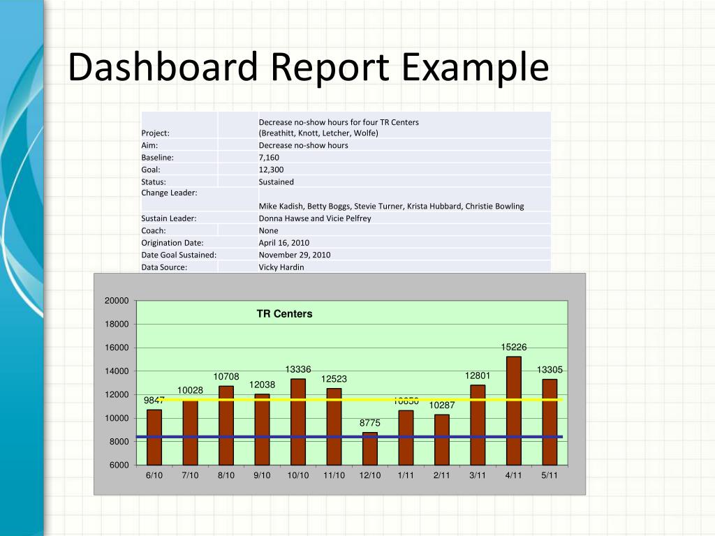 Threshold for Action • Determine the lower data threshold for action, • Time frame for data point • Change Team to reconvene and check on the handoff process