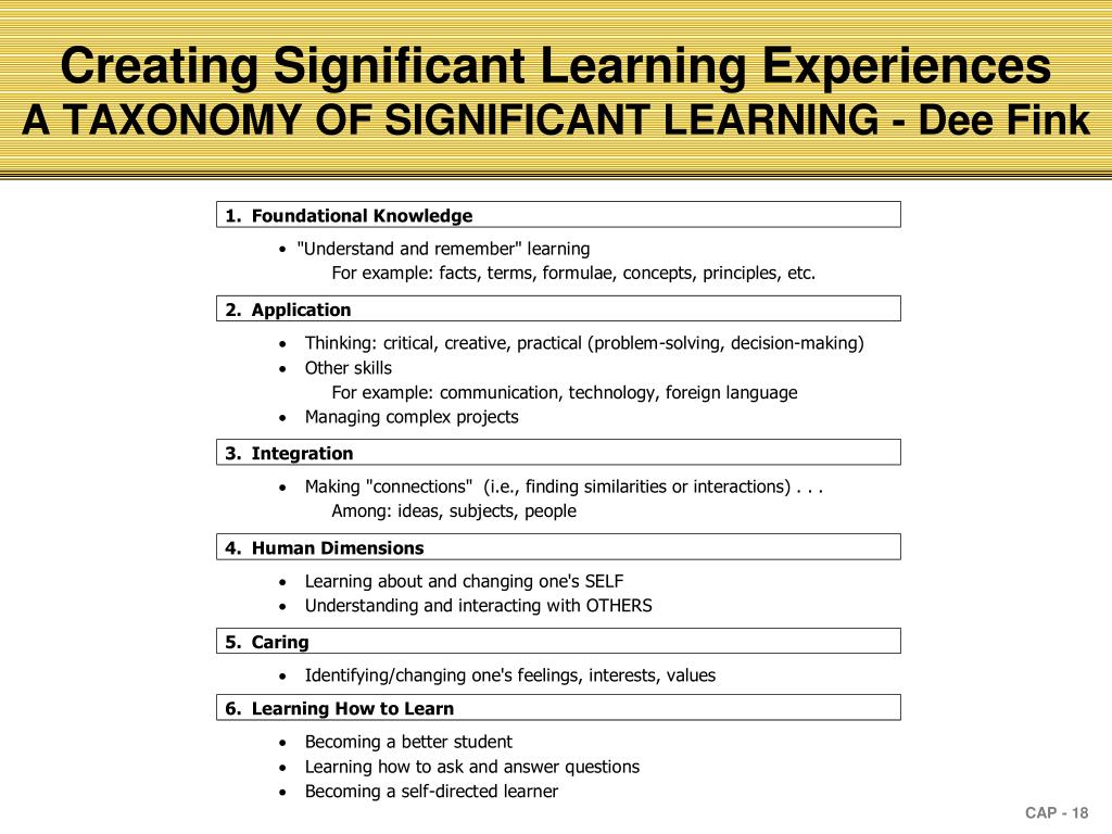 Creating Significant Learning Experiences A TAXONOMY OF SIGNIFICANT LEARNING - Dee Fink