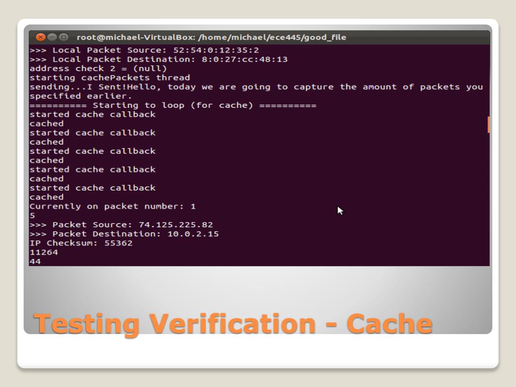 Scenario 1: Destination Machine is awake • Device acts as a bridge between the router and the client. Traffic successfully passes through. • Scenario 2: Destination machine is asleep • Check IP table for connection interval • If Larger than default time setting -> Destination is asleep • Packet is copied exactly. • Magic Packet sent to wake up the destination machine • Forward packet to destination machine Outgoing Traffic from Client