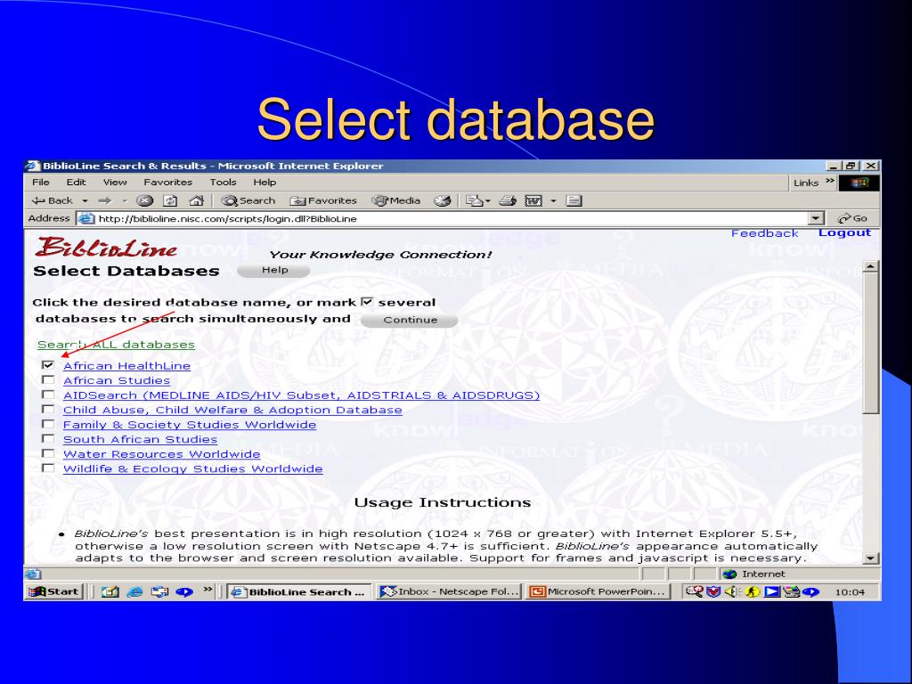 Background • The premier collection of bibliographic databases on African health issues • Unique collection of sources including many from Africa and covering all aspects of African health issues. • Covering years since 1966 • Quarterly updates • More than 700 000 records