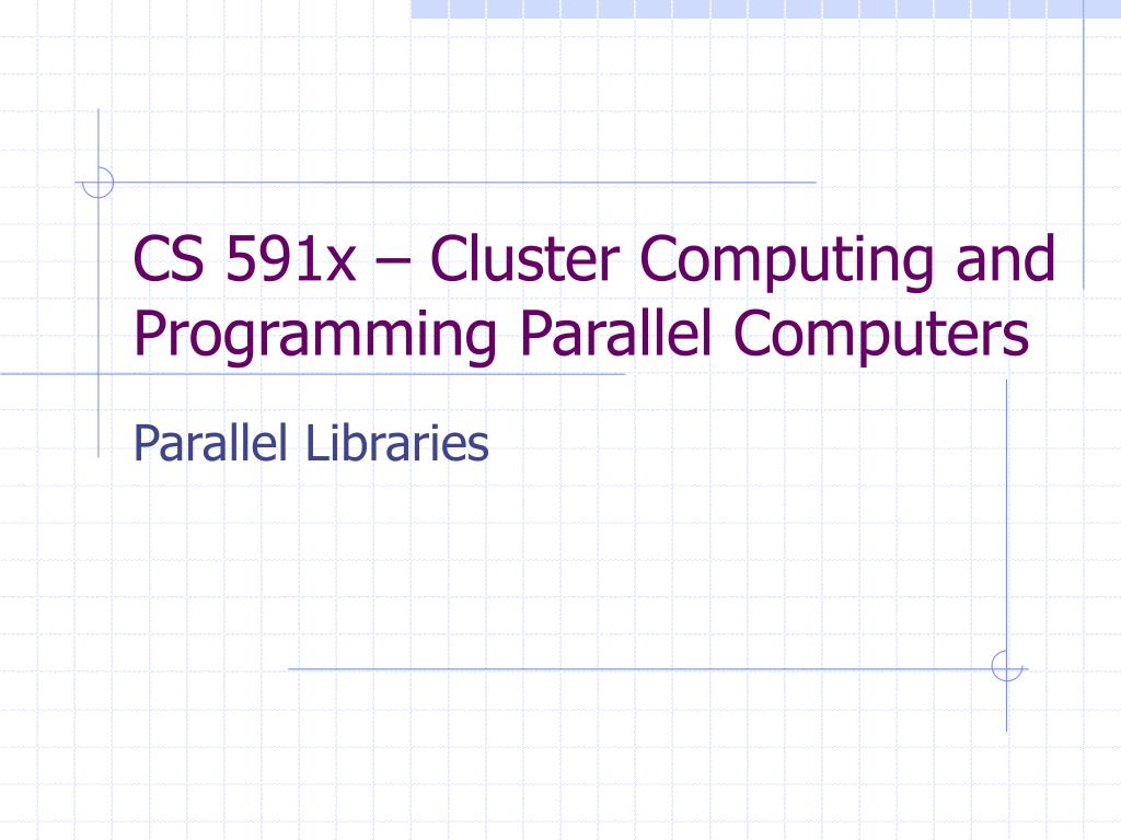 CS 591x – Cluster Computing and Programming Parallel Computers. Parallel Libraries. Parallel Libraries. Recall that so far we have been – Breaking up (decomposing) our “large” problems into smaller pieces… Distributing the pieces of the problem to multiple processors