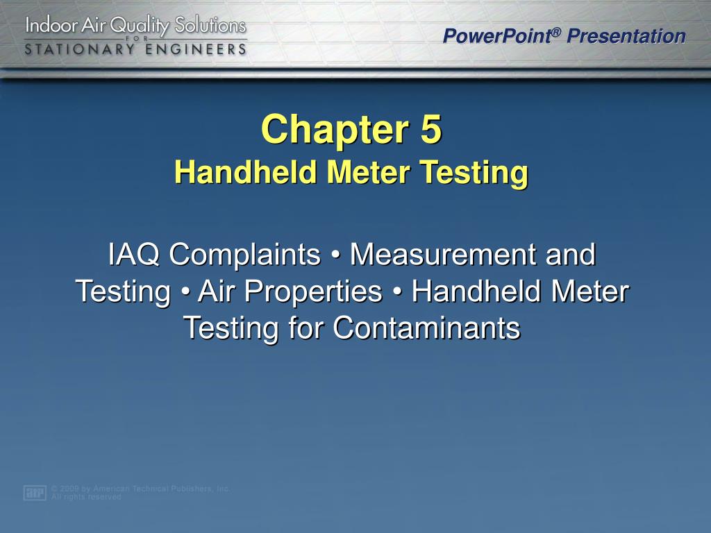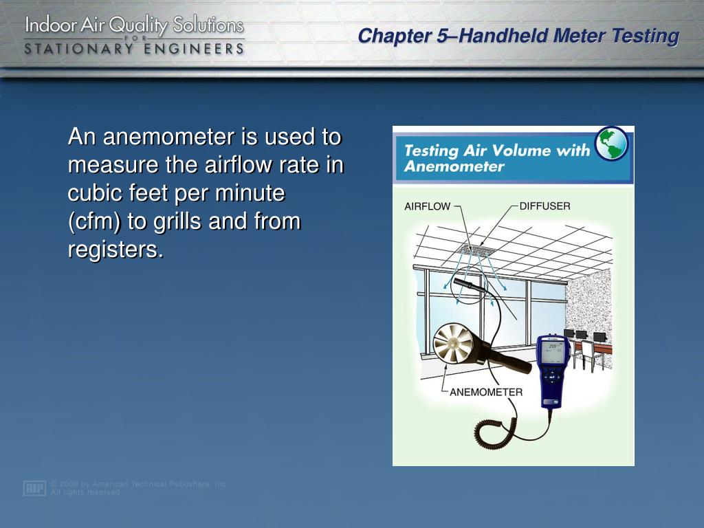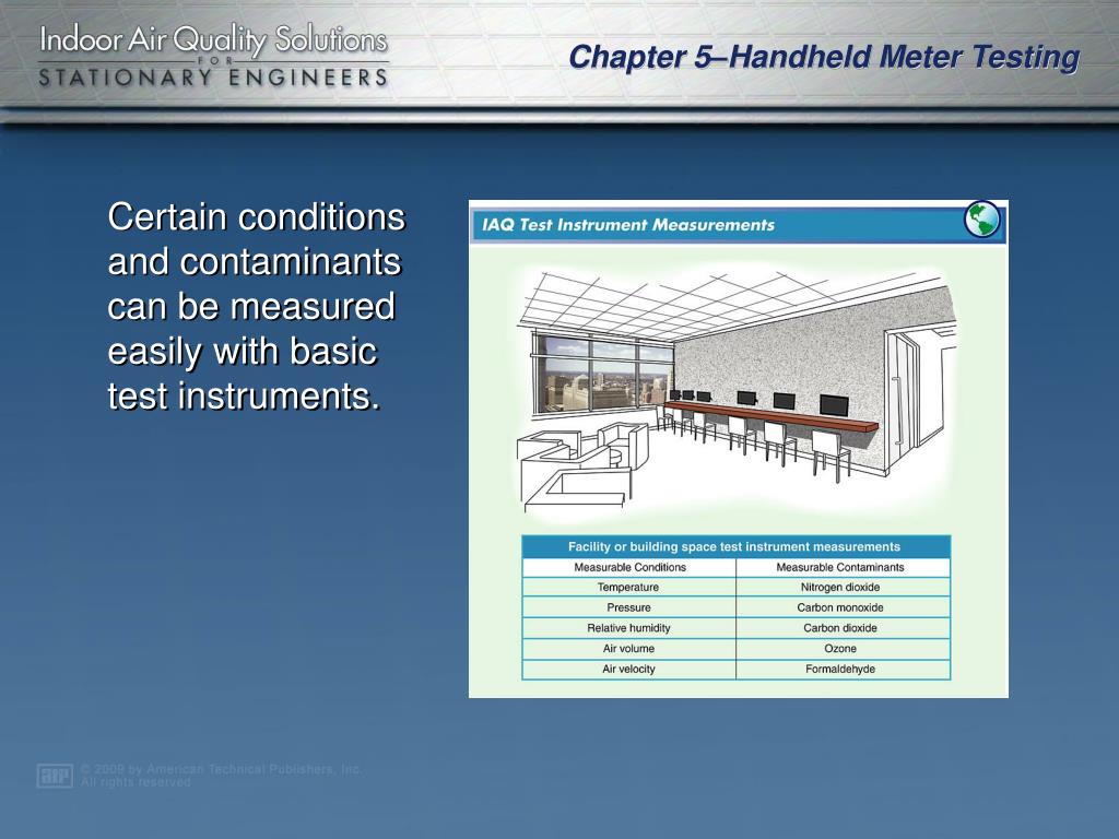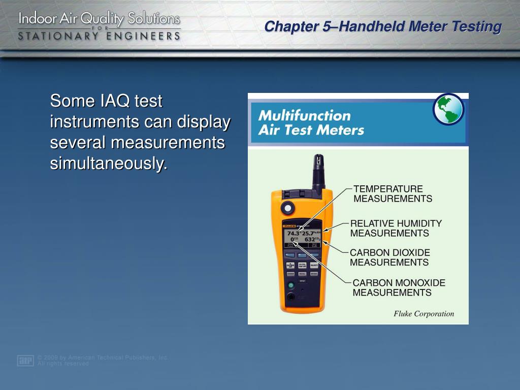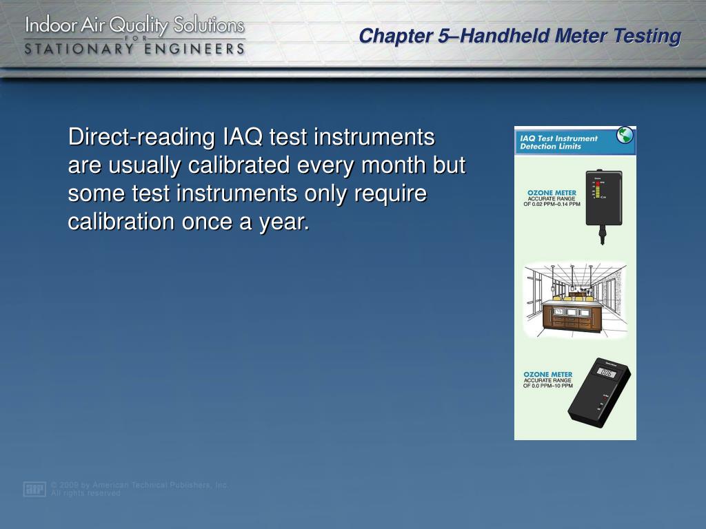 Chapter 5. Handheld Meter Testing. IAQ Complaints • Measurement and Testing • Air Properties • Handheld Meter Testing for Contaminants . A facility procedure should be followed when responding to possible IAQ complaints.