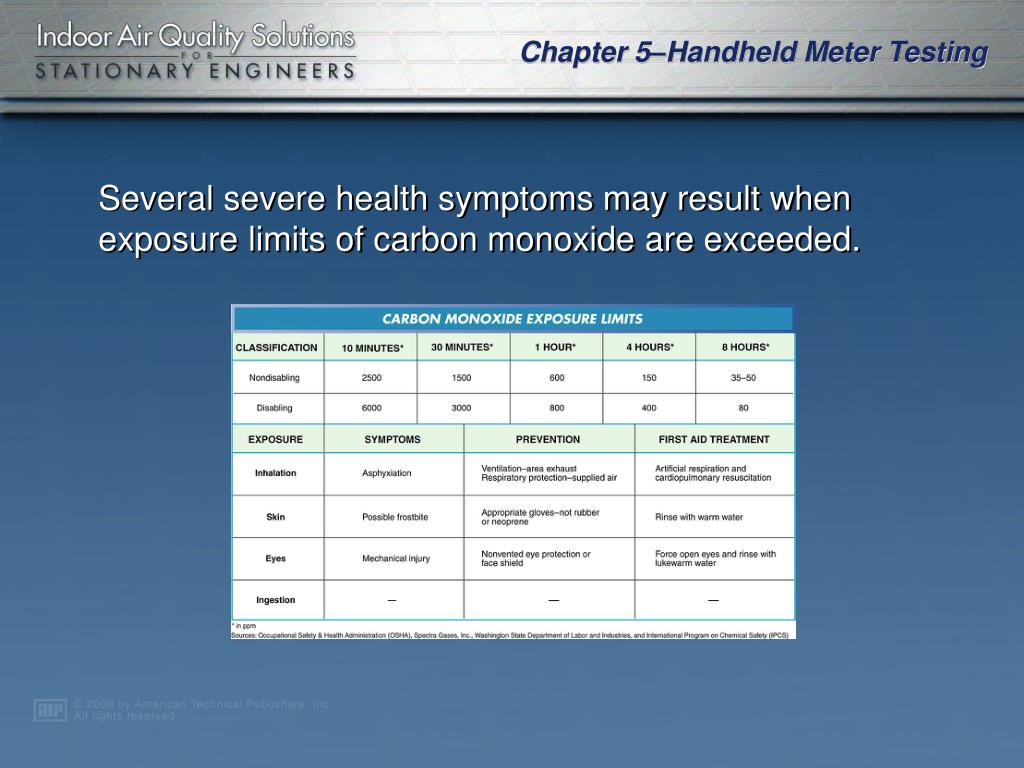 Several severe health symptoms may result when exposure limits of carbon monoxide are exceeded.