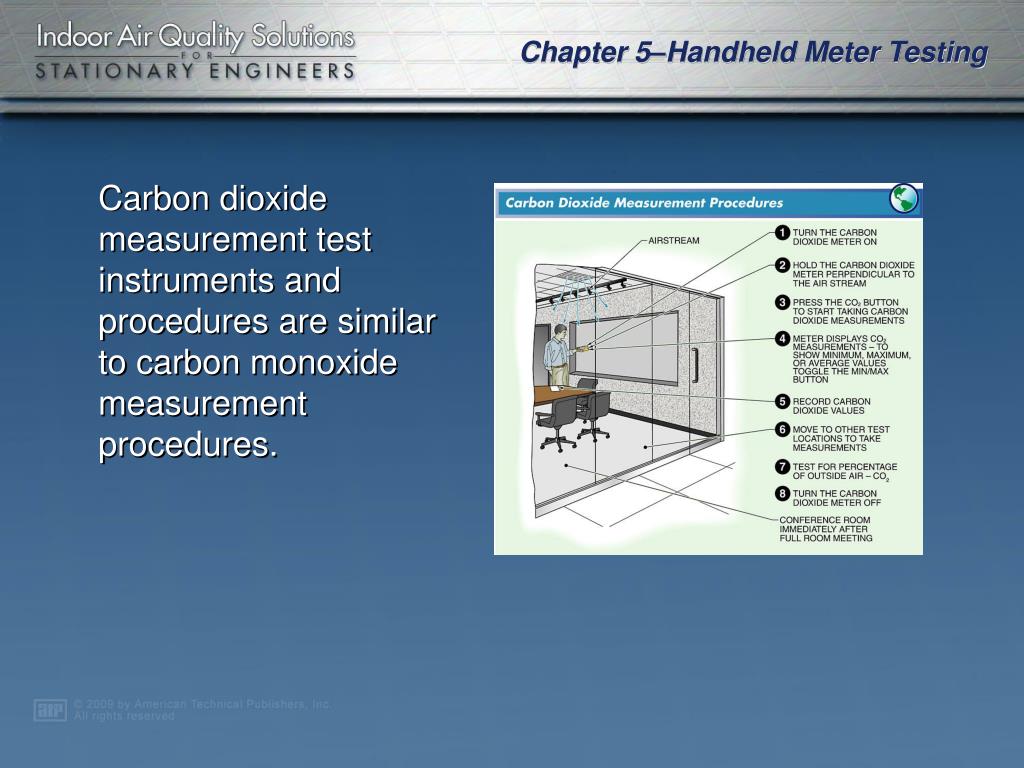 Carbon dioxide measurement test instruments and procedures are similar to carbon monoxide measurement procedures.