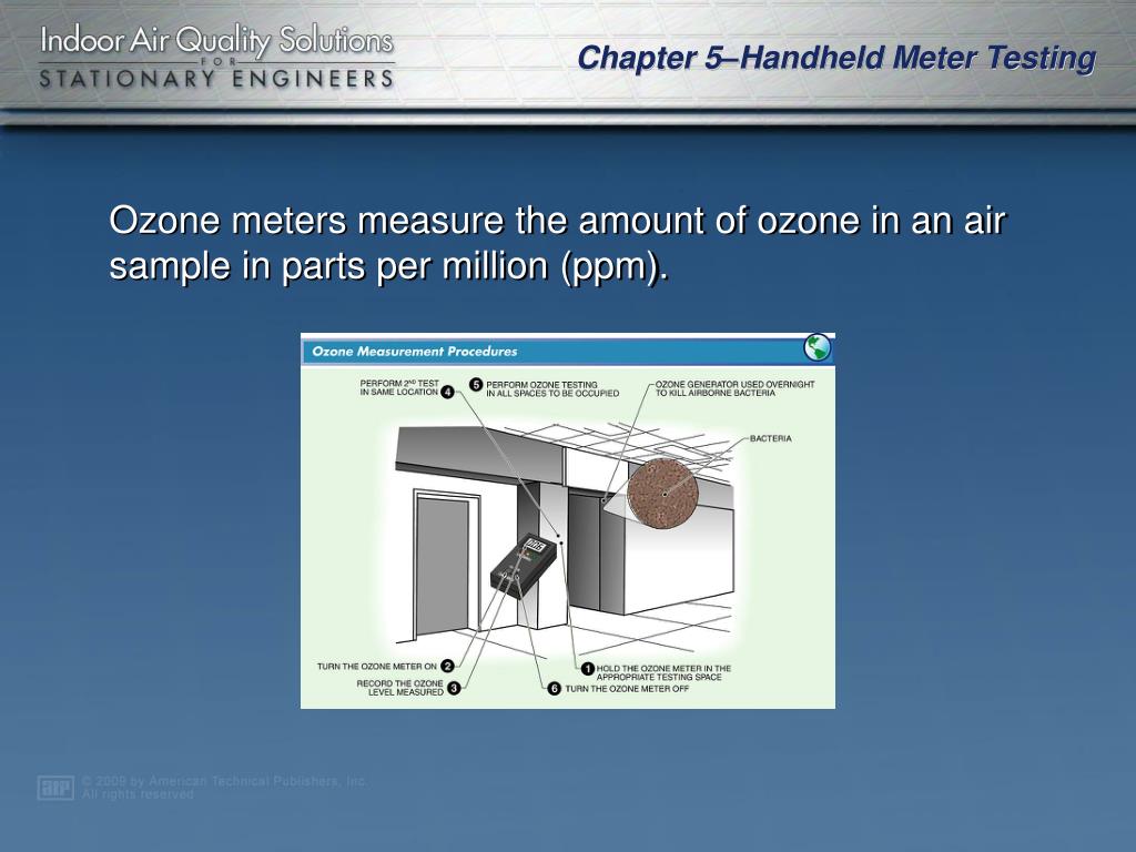 Ozone meters measure the amount of ozone in an air sample in parts per million (ppm).