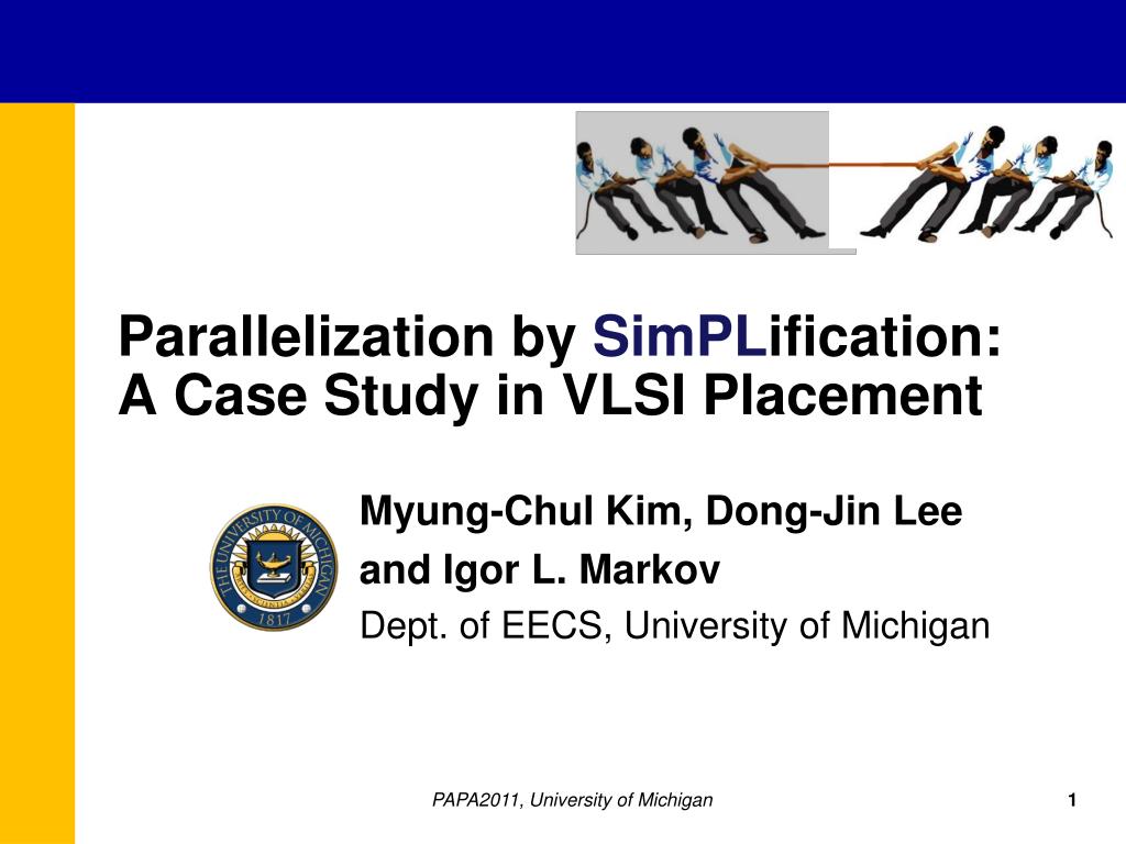 Parallelization by SimPLification:A Case Study in VLSI Placement Myung-Chul Kim, Dong-Jin Lee and Igor L. Markov Dept. of EECS, University of Michigan PAPA2011, University of Michigan