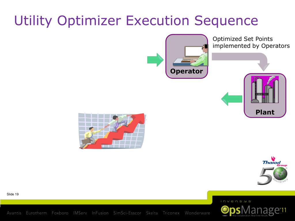 Utility Optimizer Execution Sequence Optimized Set Points implemented by Operators • Operator • Plant