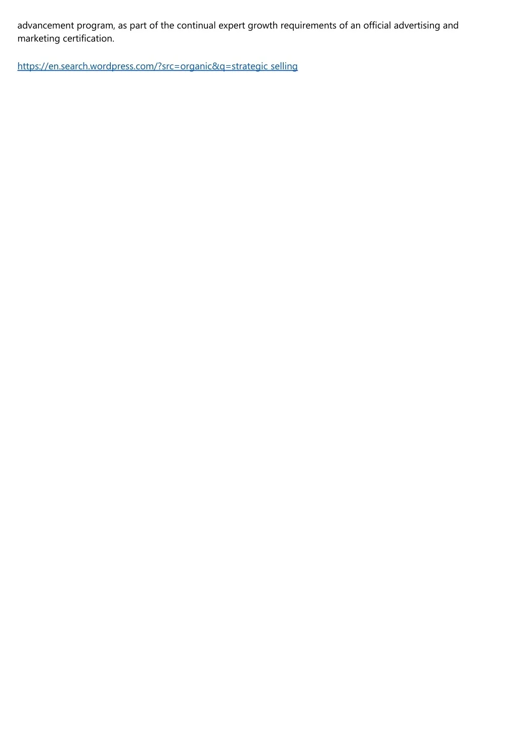 advancement program, as part of the continual expert growth requirements of an official advertising and marketing certification. https://en.search.wordpress.com/?src=organic&q=strategic selling