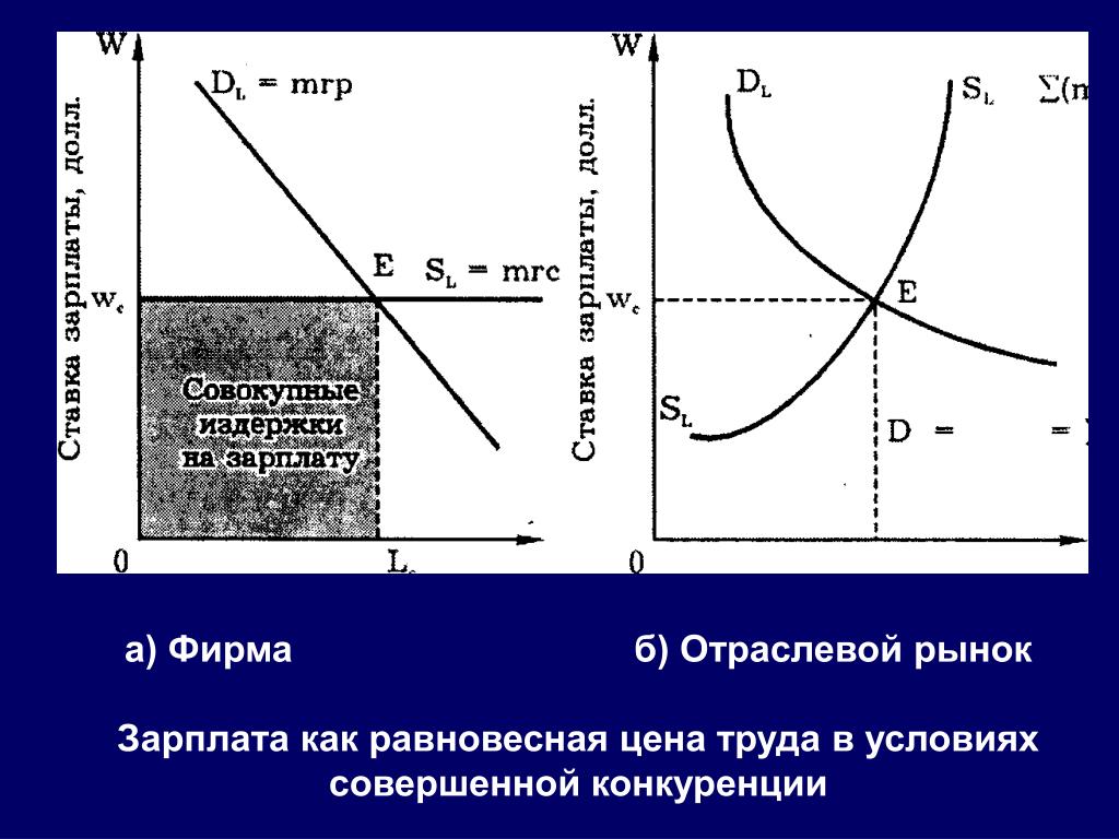 а) Фирма б) Отраслевой рынокЗарплата как равновесная цена труда в условиях совершенной конкуренции