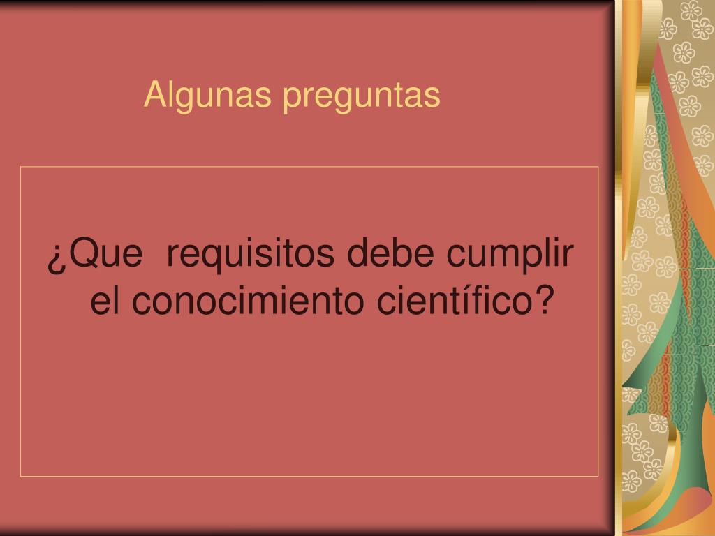 Algunas preguntas ¿Que requisitos debe cumplir el conocimiento científico?