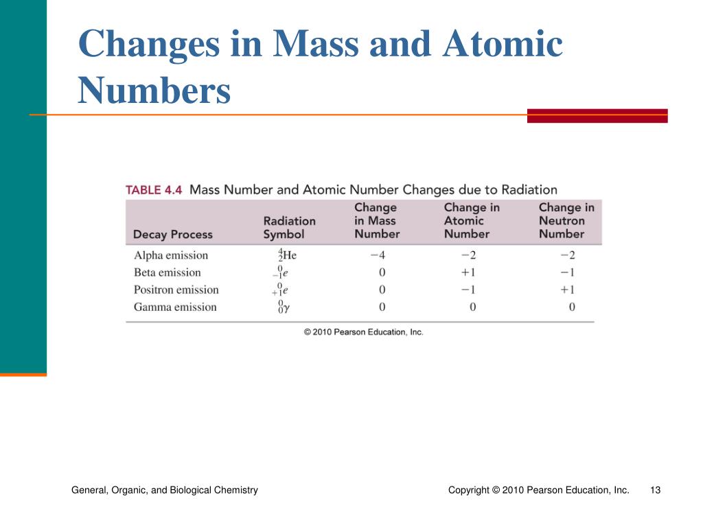 Positron Emission In positron emission, • a proton is converted to a neutron and a positron • the mass number of the new nucleus is the same, but the atomic number decreases by 1