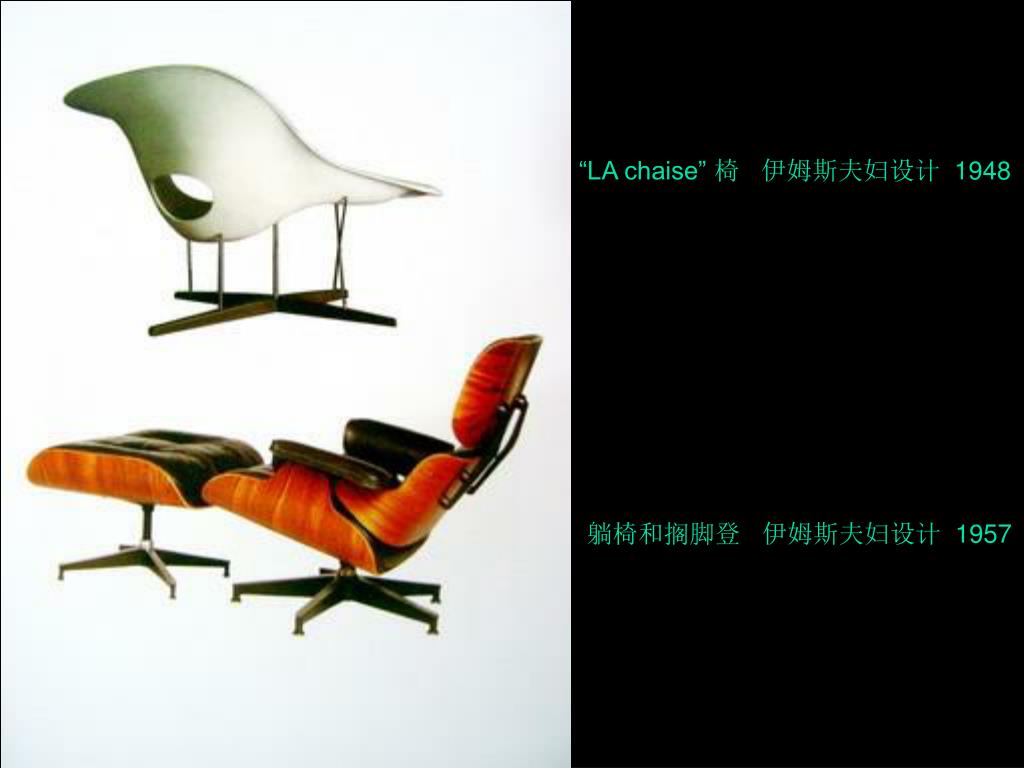 “LA chaise” 椅 伊姆斯夫妇设计 1948 躺椅和搁脚登 伊姆斯夫妇设计 1957