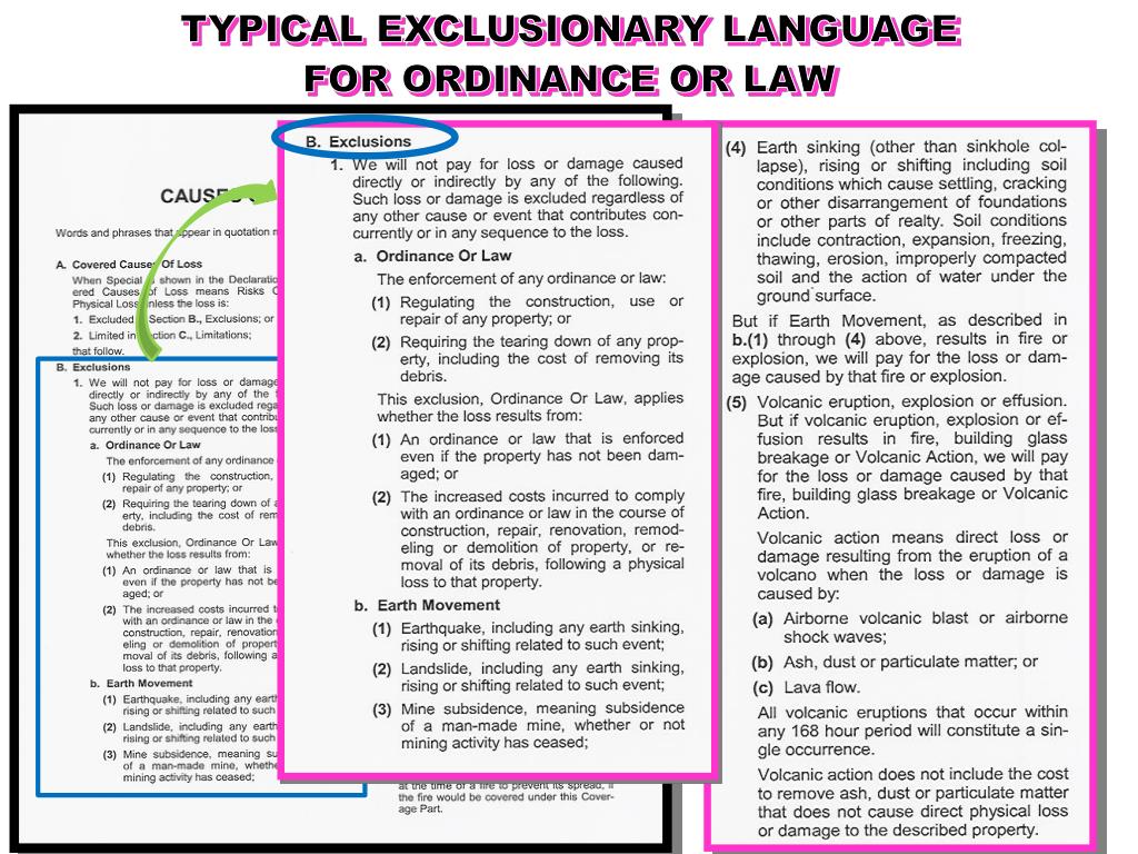 TYPICAL EXCLUSIONARY LANGUAGE FOR ORDINANCE OR LAW